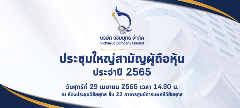 ในวันศุกร์ที่ 29 เมษายน 2565 เวลา 14.30 น. ณ ห้องประชุมวิชัยยุทธ ชั้น 22 อาคารศูนย์การแพทย์วิชัยยุทธ