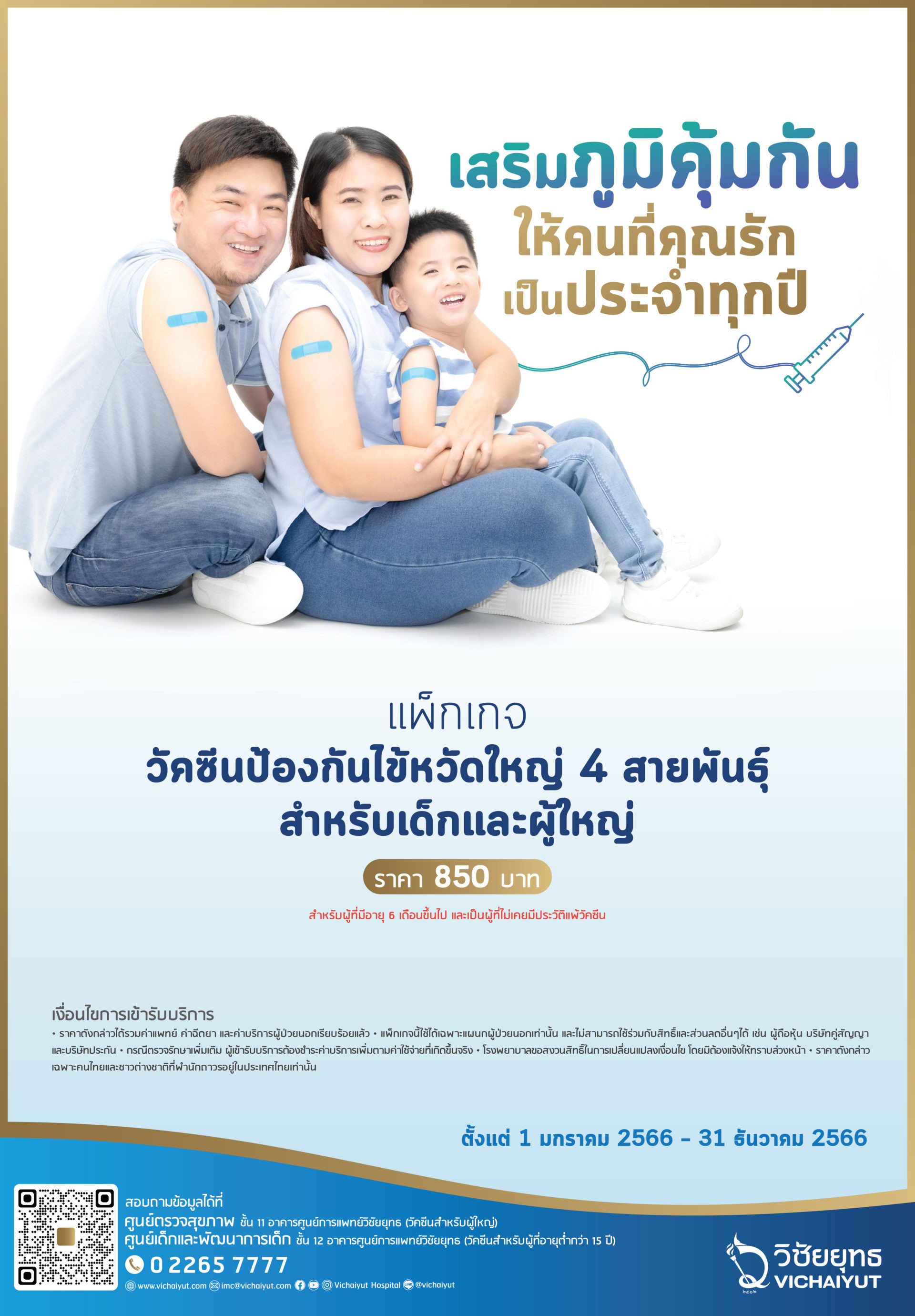 กับแพ็กเกจ วัคซีนป้องกันไข้หวัดใหญ่ 4 สายพันธุ์ สำหรับเด็กและผู้ใหญ่