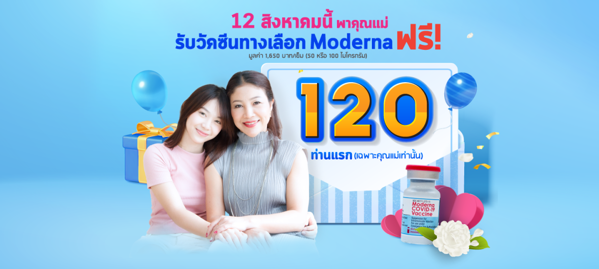 12 สิงหาคมนี้ พาคุณแม่รับวัคซีนทางเลือก Moderna ฟรี! เฉพาะคุณแม่ 120 ท่านแรก